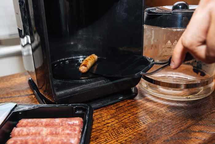 Special grilled sausages or just pieces of sausage can be reheated or even thoroughly fried using the heated disc of the coffee maker.