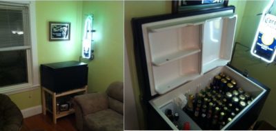 - Fridge. A completely ready-made cabinet for storing books, cans, and cereals. The grids are turned into mounts for posters and photographs.