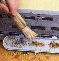 Depending on the frequency of use, crumbs accumulate in the housing, for this you need to put it on its side and use the same brush to carefully sweep them from inside the toaster.