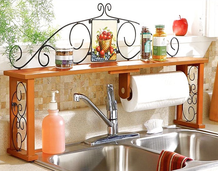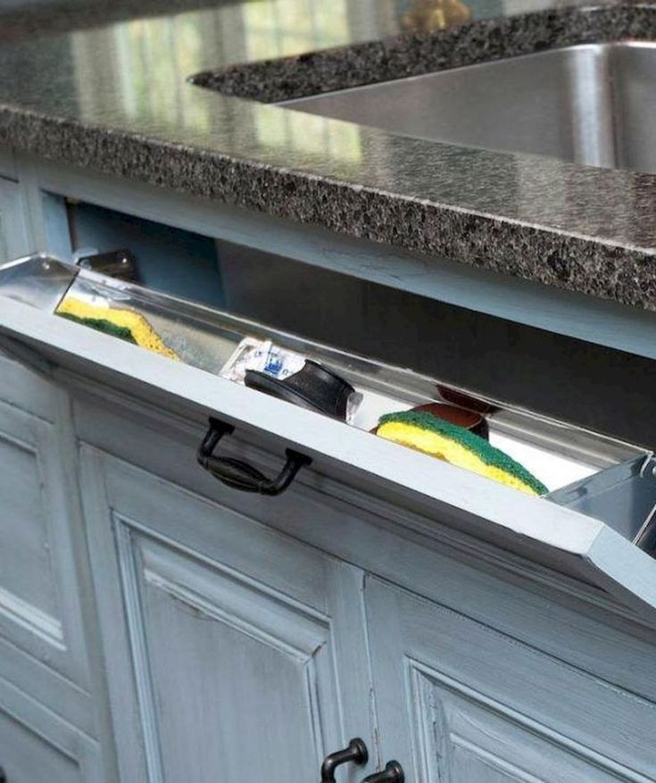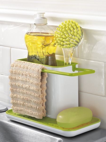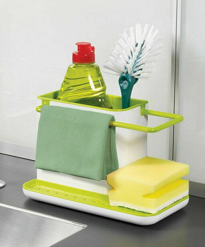 Sometimes a bright bottle of dishwashing detergent placed in a prominent place near the sink can ruin the entire interior and create the appearance of clutter. To solve the problem, pour the product into a cute dispenser, store sponges and scrapers in small plastic holders, and place dishwasher tablets in a small container. It will be much better this way.