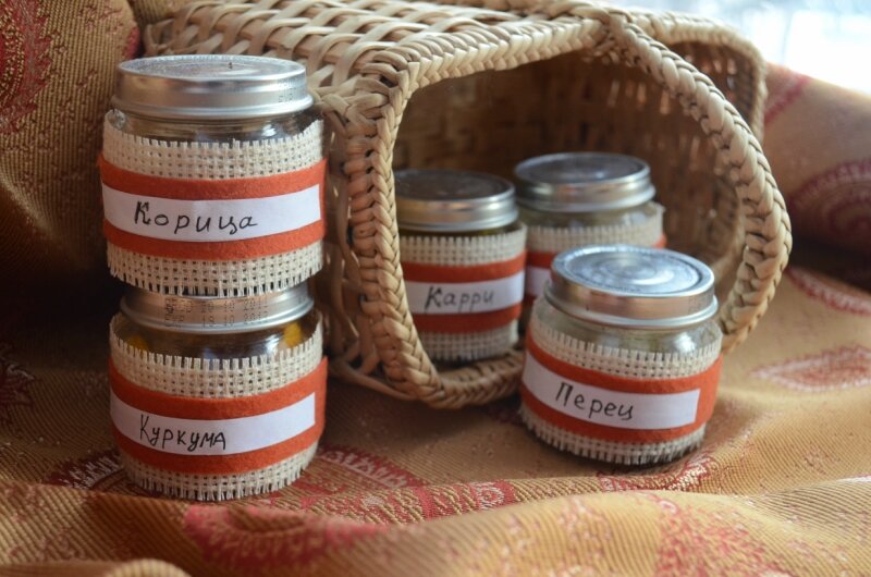If you keep spices in the bags in which they are released, then they will fizzle out faster, losing their aroma, and they will spoil much faster. To preserve both taste and aromatic qualities, it is better to pour spices into glass. Baby food jars are great for this, since you first need to remove the label.