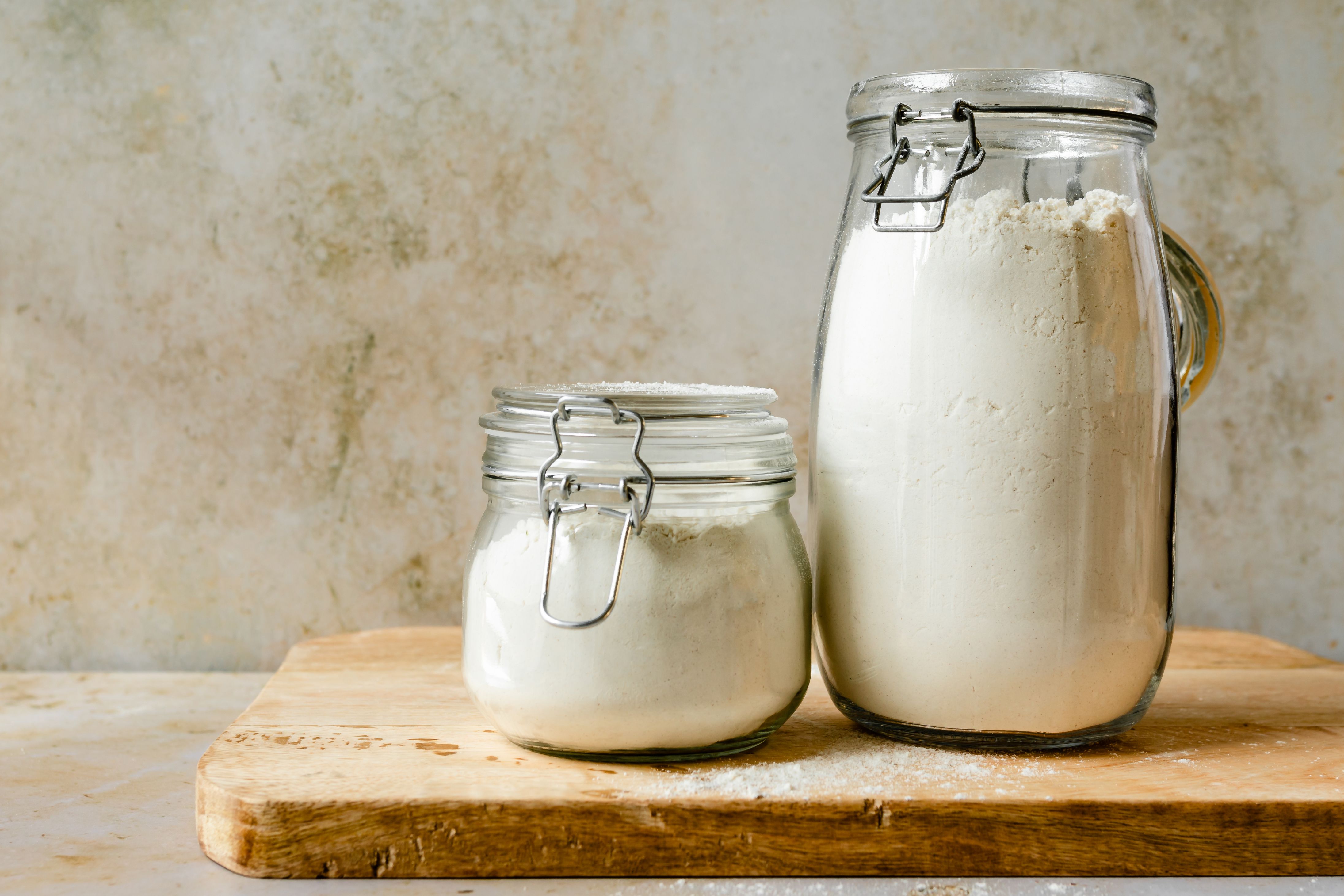 Sometimes it is difficult to find a suitable container for flour, since many cans are produced with a volume of about 1 liter, and flour is sold in most cases from 1.5 kg. The most common option is 3 kg. So look for a container for this volume, and also one that looks nice.