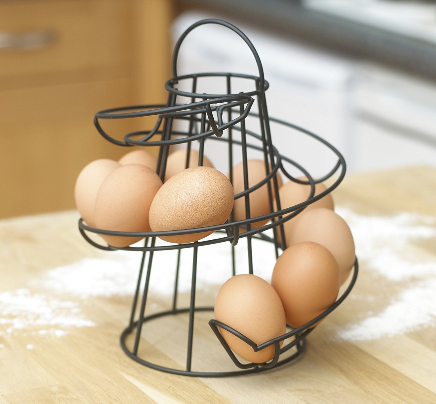 We usually place eggs on the refrigerator shelf in a special compartment. However, if you want something more impressive and stylish, then you can buy a beautiful basket - wicker, metal, wood. Eggs are also stored well in such containers.