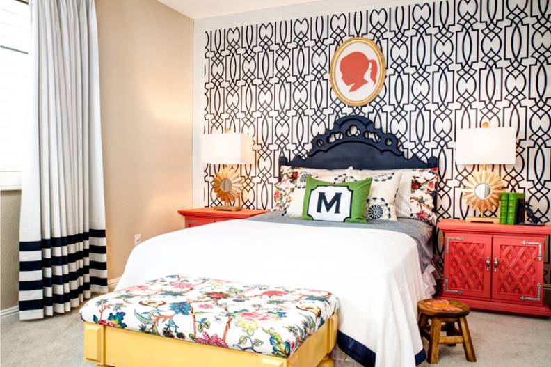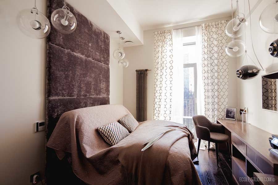 Don't be afraid to experiment and add bold solutions. For example, all the walls can be painted in a calm shade, and the surface behind the bed can be decorated more brightly and effectively.