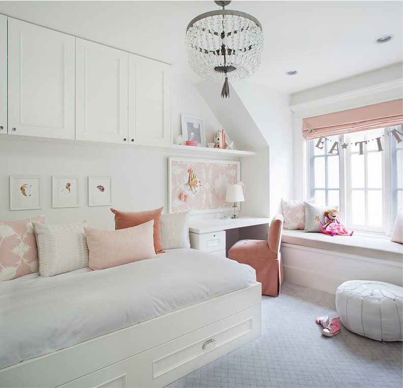 However, for a child’s room it is permissible to use colorful tones, and in some cases, pastel ones. To adhere to the principles of this direction, you can use two or three colors in the interior, play with contrasts, and add metallic elements. So, a combination of beige and chocolate is perfect for boys, and white and pink for girls.