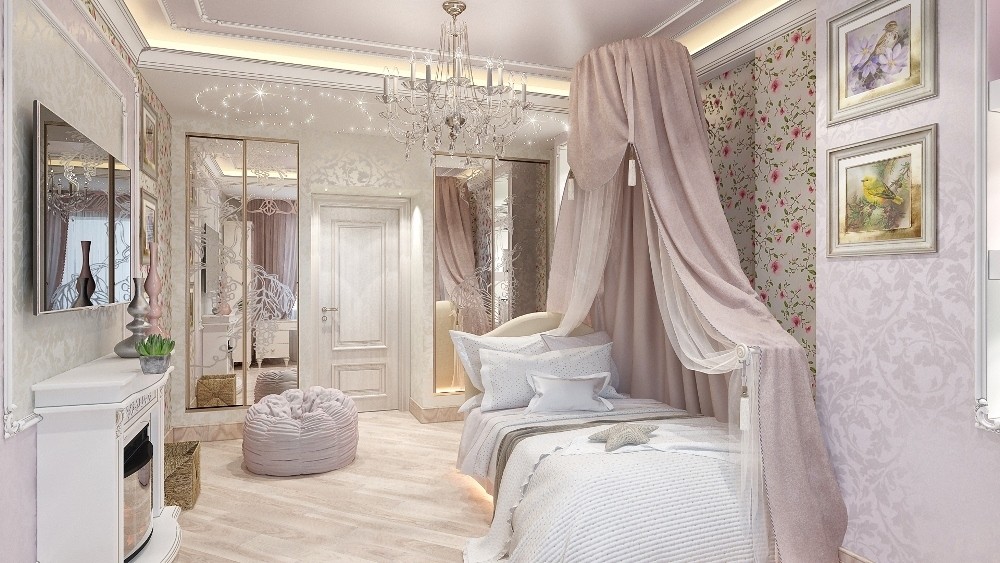 When decorating a room, do not forget that in a delicate, weightless space you should not play with contrasts with zeal and overload the nursery with an abundance of drawings. The room is decorated solely by texture: the pattern is not particularly striking, but is present - on curtains, furniture, wallpaper, accessories. It is due to the lace ornament that the impression of an openwork and elegant interior is created, but it is important that it fits harmoniously into the decor.