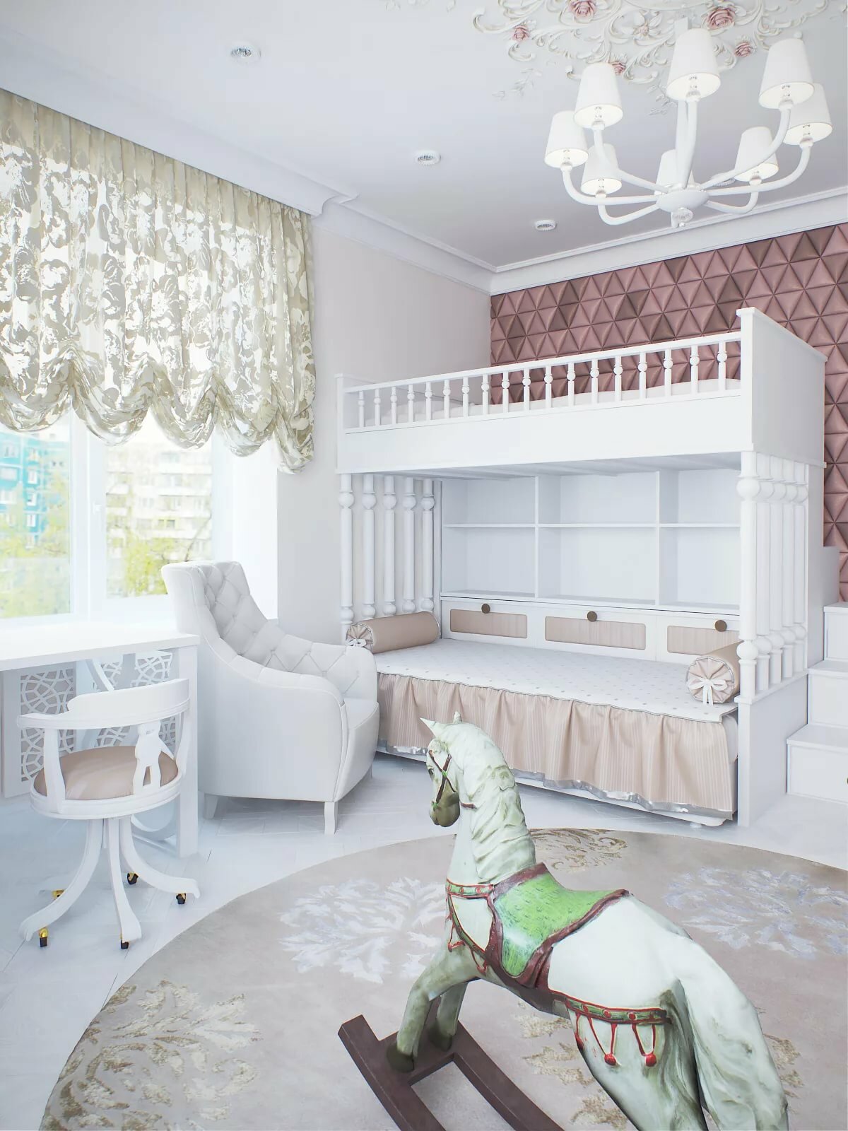 A children's room in the art deco style is an amazing room that conveys a special atmosphere of magic. What makes this trend popular is its exceptional expressiveness, reflecting the brilliance and richness, as well as the lightness of the interior.