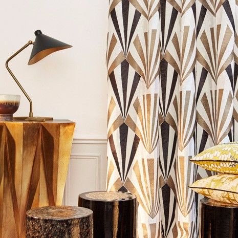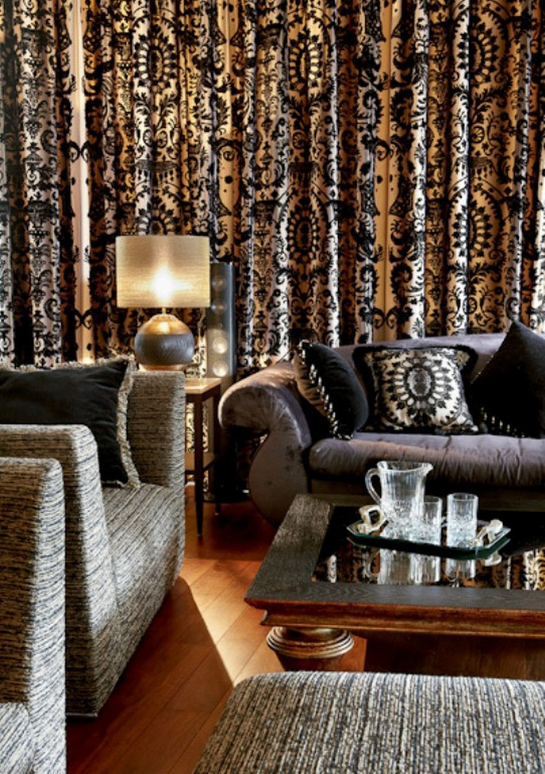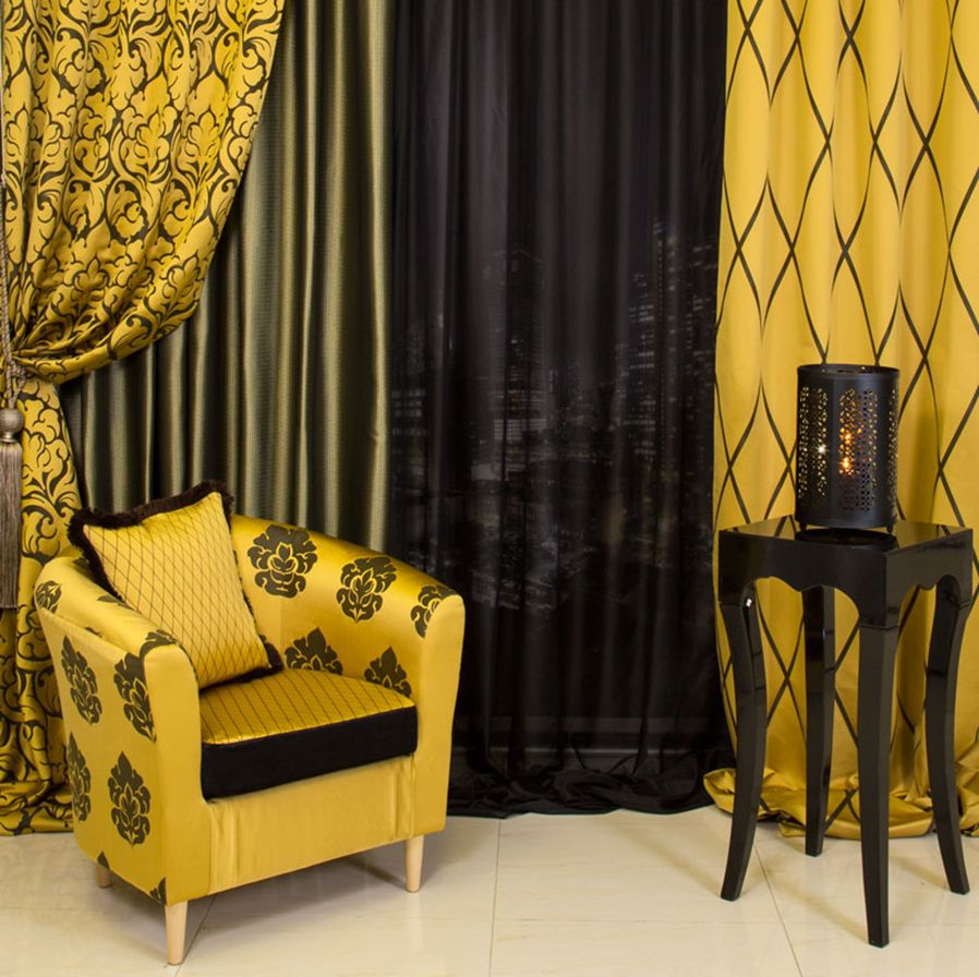 Separately, it is worth mentioning curtains in the Art Deco style. We can say that this particular element is almost the main one, which sets the entire atmosphere of a bright and bold direction. If the room is decorated predominantly in calm shades, then it is permissible to focus on the curtains. They must certainly be long, heavy, massive, with a variety of patterns and designs. The use of bright colors is quite welcome.