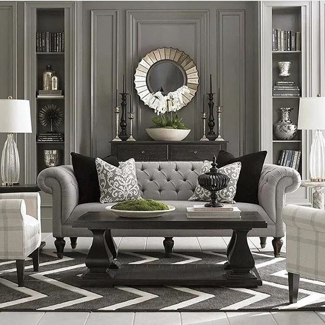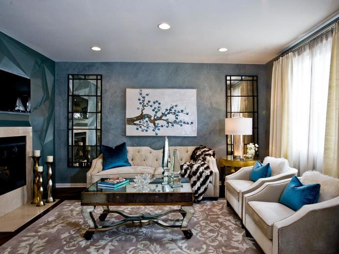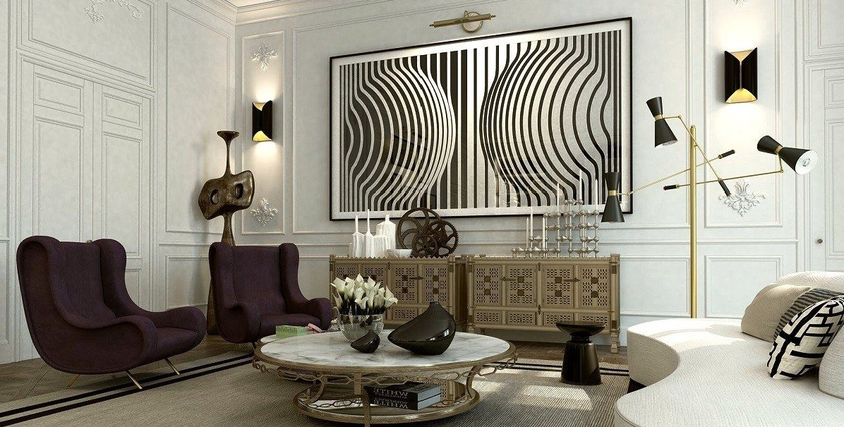 Art Deco living room design is synonymous with angularity, clean lines and sharp edges. When decorating a room, choose symmetrical geometry - trapezoids, zigzags, diamonds and squares. The sunburst motif embodies the Art Deco style with its sharp transitions and uneven strokes.