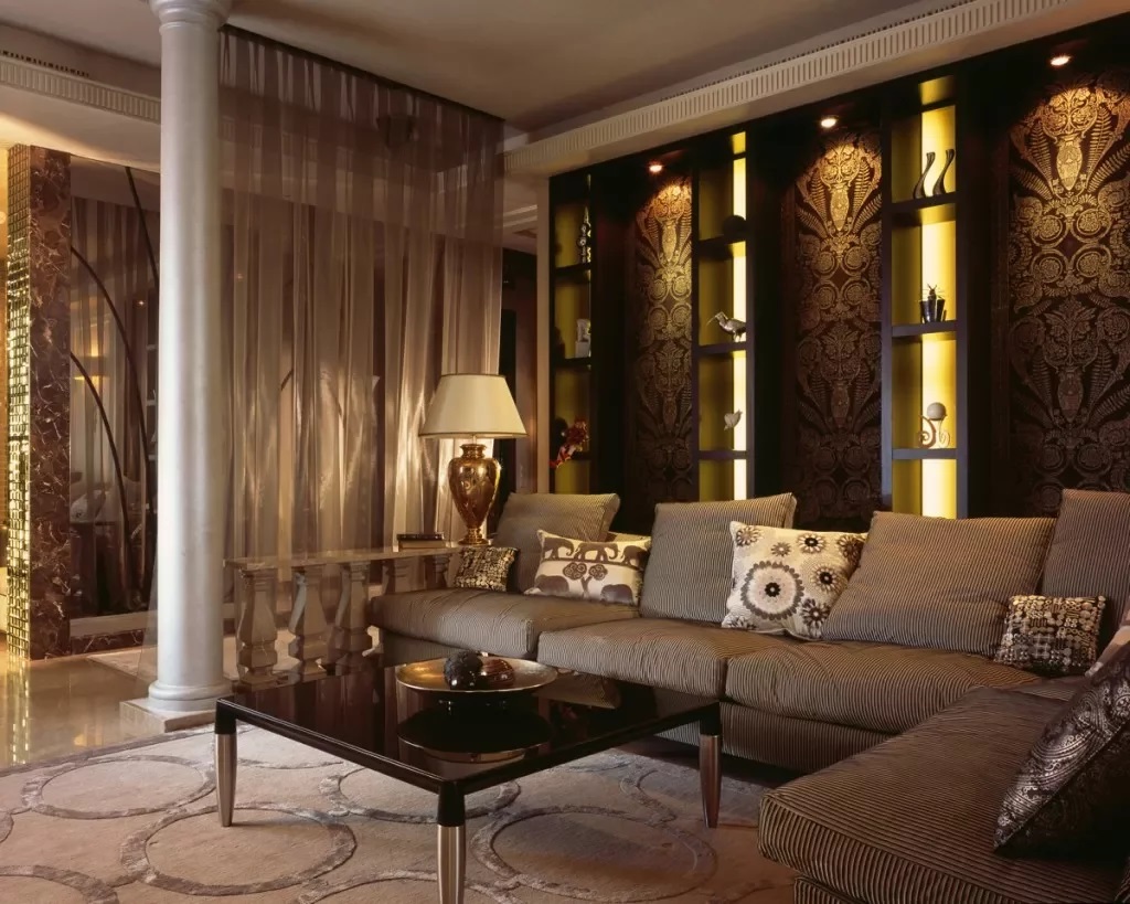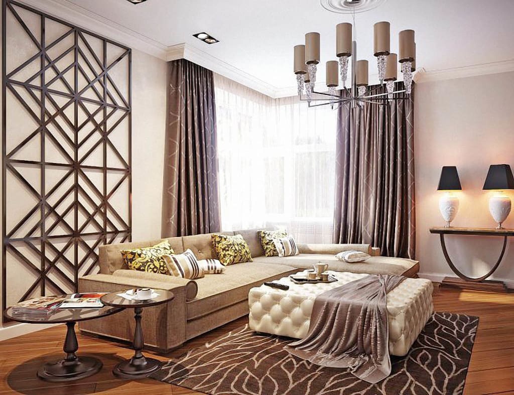 As decor in the living room, you can use various products made of leather, natural wood, ivory, metal and semi-precious stones. With these materials you can create an interesting decor that will attract the attention of your guests.