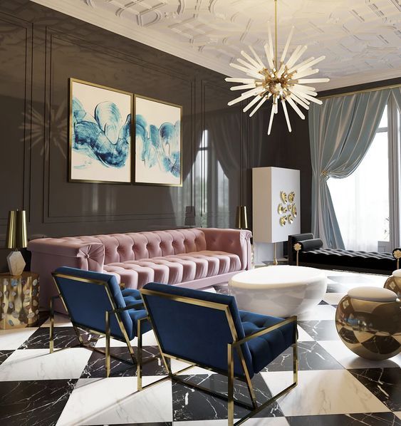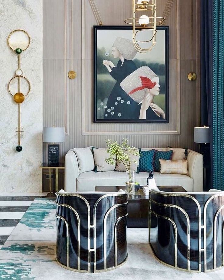 Originating in the 1920s, the Art Deco style is defined by majestic and lush forms, bright and rich colors, a variety of materials, luxurious and exquisite ornaments. It updates the interior, reflecting wealth, chic, elegance and modernity.