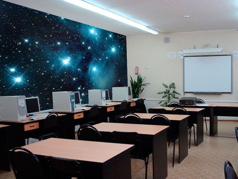 Photo wallpapers (both at school and in kindergarten) will help set children up for work and direct their attention in the right direction.Wall decorations, no matter how strange it may seem, may well contribute to the learning process and set the tone for the lesson. For example, for a literature class you can order canvases depicting writers, for music - notes and treble clefs, mathematics - equations, tables or visual aids, English - the alphabet, foreign words, physics and chemistry - test tubes, formulas, experiments, geography - a map world, city.