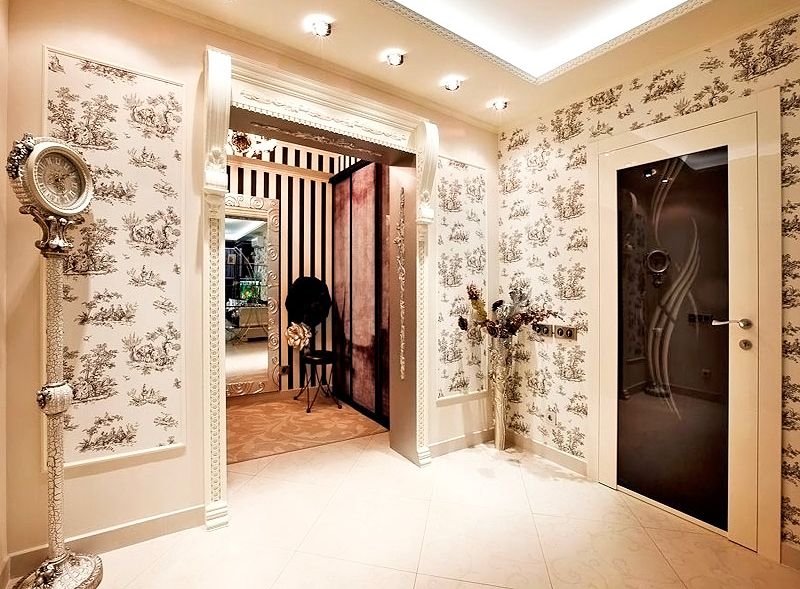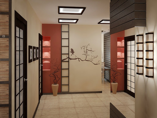 The hallway can be covered with different wallpapers in an oriental style. It is important to correctly combine several of these paintings and choose the optimal colors.