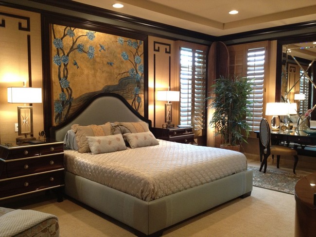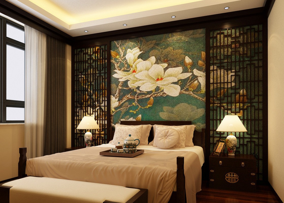 So, you shouldn’t decorate the entire room in bright colors. Just for the bedroom, it is better to decorate only one wall with oriental wallpaper. Typically this is the surface behind the bed.