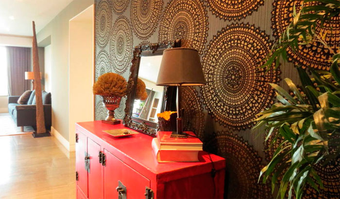 In the usual eastern direction, everything obeys rules and clear geometry. This can be clearly seen if you look at photo selections of famous religious buildings. The main goal of a person who decorates a room and chooses wallpaper in an oriental style is to understand the principle, the task, choose the main shade, set the character of the room and the wallpaper.
