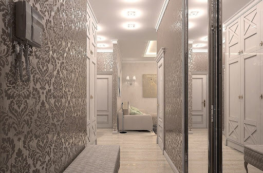 To make the hallway cozy, you should choose light wallpaper. The best options would be: