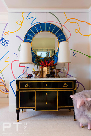 Phillip Thomas, founder and director of Phillip Thomas Inc., follows his core belief that the process of creating a home should be fun for everyone involved. He also believes that speckled wallpaper can be used in any interior - his designs are full of bright colors, textures, architecture and eclectic details.