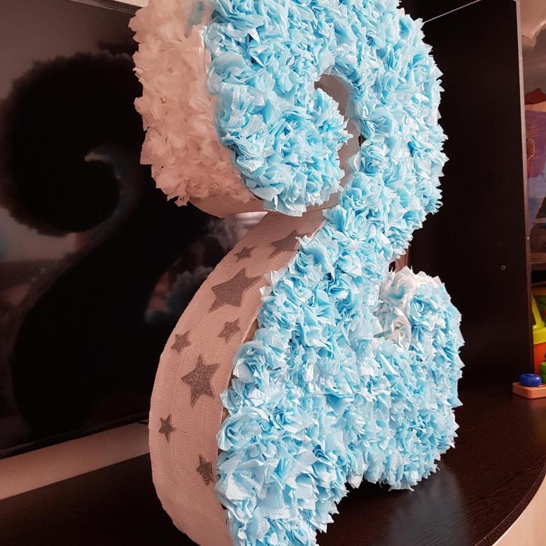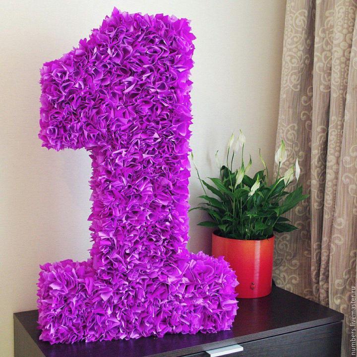 The process is quite painstaking and lengthy, and also involves a complex step in the form of creating a frame for the number from thick cardboard, which is then covered with napkins. However, the end result, of course, will please both you and the hero of the occasion.