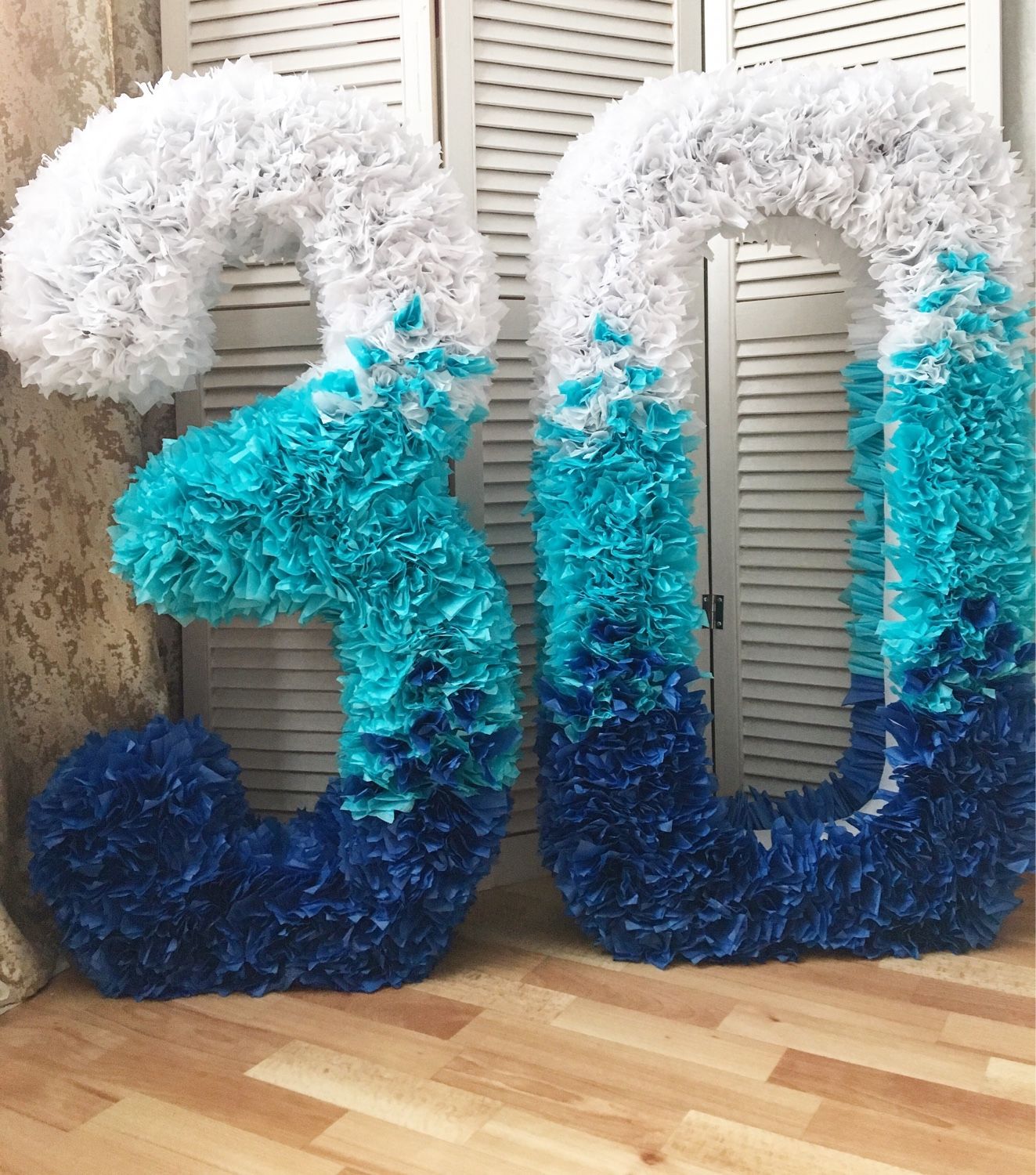 For some reason many people think that numbers made from paper napkins - an idea exclusively for kids. But we hasten to assure you that both teenagers and adults will like this decor.