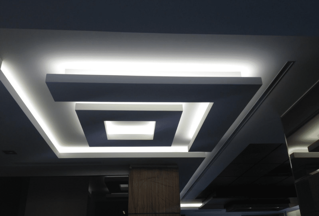 Thanks to the frame, multi-level ceilings are created. This is a design expression of the individuality of the room.The technique is used to decorate large rooms, such as large bedrooms or living rooms, as well as dining rooms or playrooms. Built-in lamps and spotlights distributed throughout the room provide reliable illumination and accent placement.