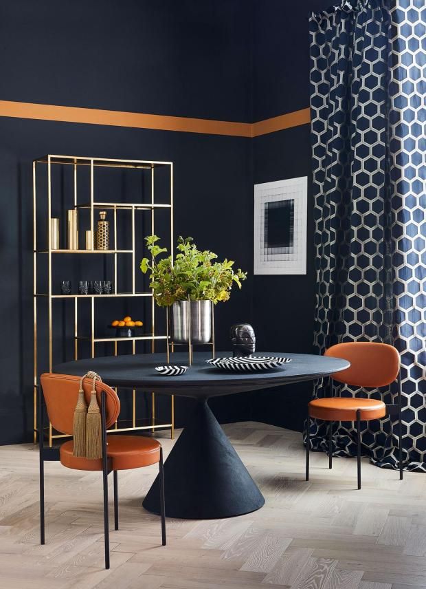 - Orange, blue, dark brown - an extraordinary but very effective combination.