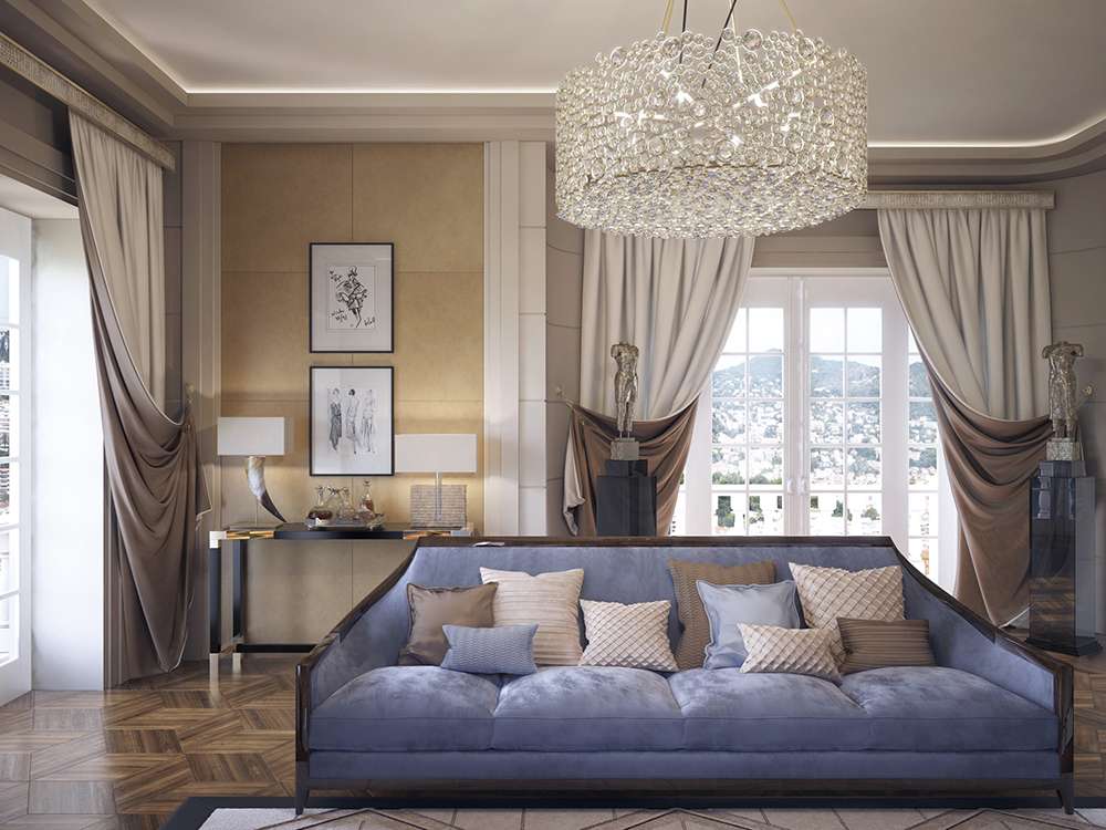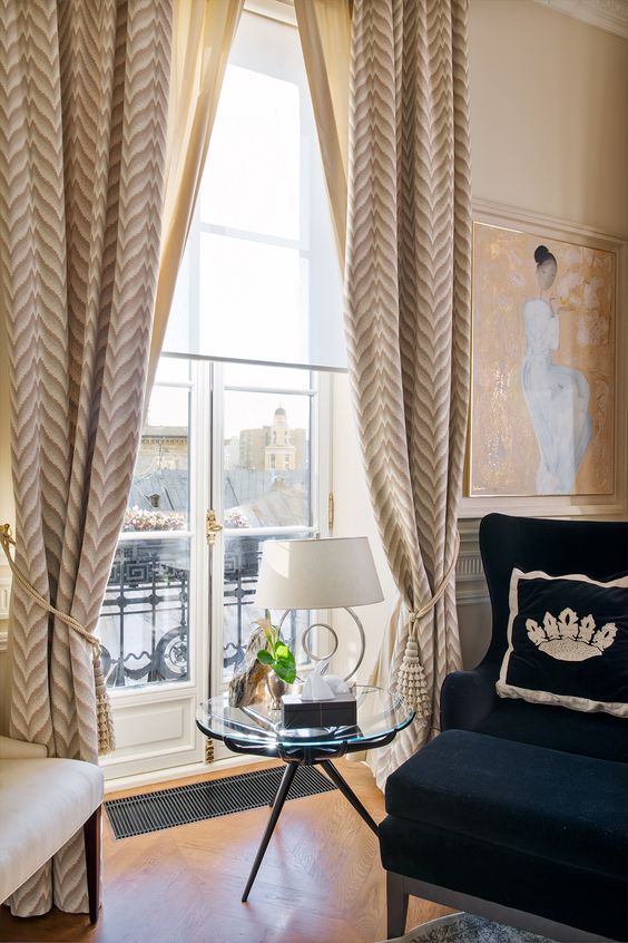 The main feature of curtains in the art deco style is that they fit harmoniously into any room design:
