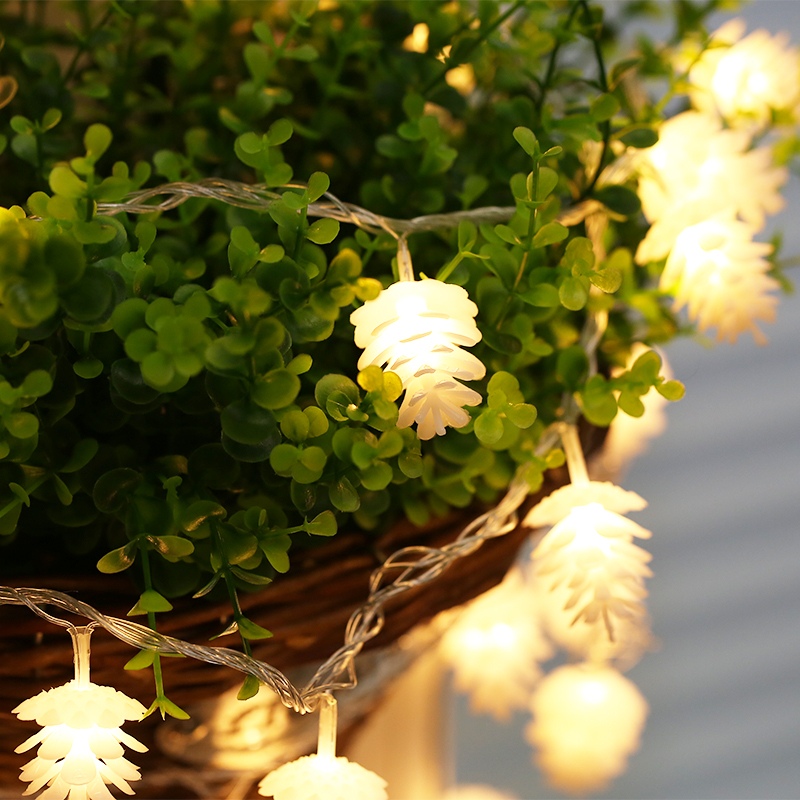 The design is quite simple. The base is a string on which imitation cones, snowflakes, stars or balls are located. The advantage of the garland is that it does not work from the mains, but from AA batteries. This allows you to place it wherever you want - a window, a tree, furniture. The length of the product is your choice - 1.5, 3 or 6 meters.