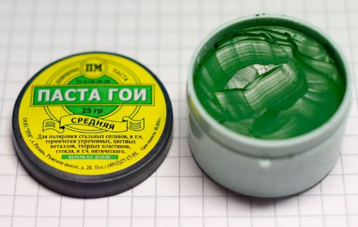 GOI paste appeared almost a hundred years ago, and all this time it has been successfully used for polishing metals, including steel, ceramics, stone and some other surfaces. The popularity of this polishing product is explained not only by the excellent results after use, but also by its affordable cost. GOI paste is available in 4 types: