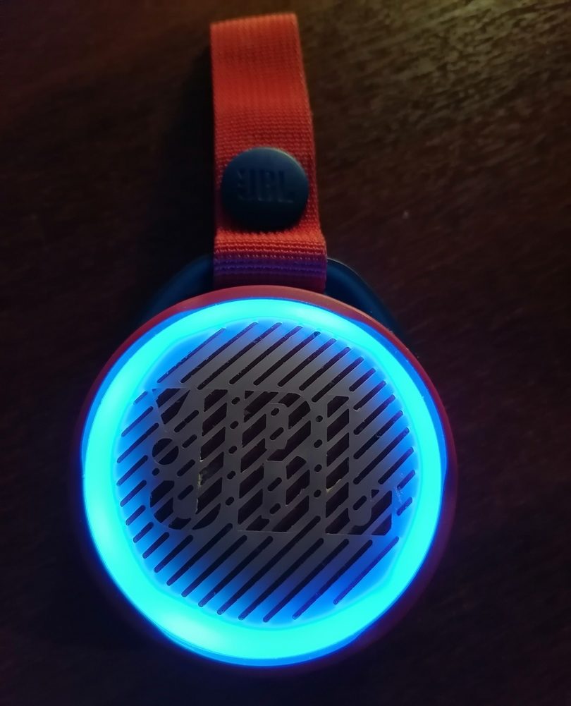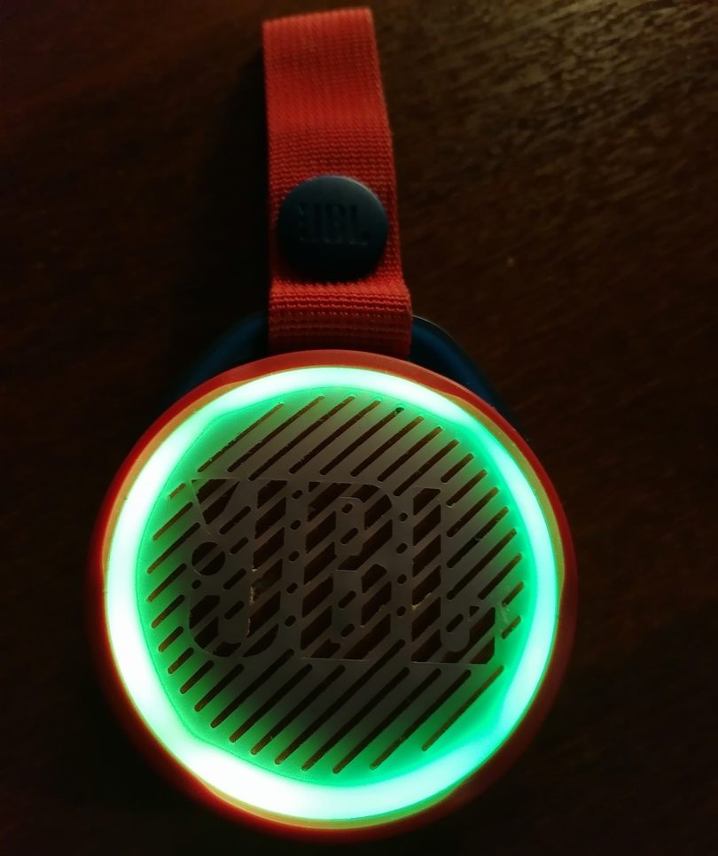 JBL jr pop is available in different colors. We took the red and blue one since we are having a boy. But there are options for girls too.
