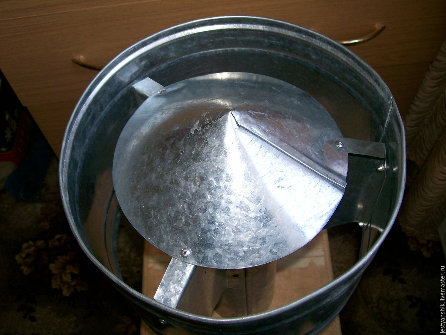 After cutting comes the assembly stage. The workpieces are given the required shape, fastening is carried out using rivets or semi-automatic welding. The outer cylinder can be fastened to the inner cone; if you take several metal strips, they will act as brackets. Using the same strips, the protective top can be connected to the cylinder or fixed with rivets on the inner cone.