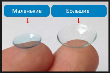 The lens can be positioned on the eye in completely different ways and, as a result, have a different size. Depending on the diameter, three groups are distinguished: