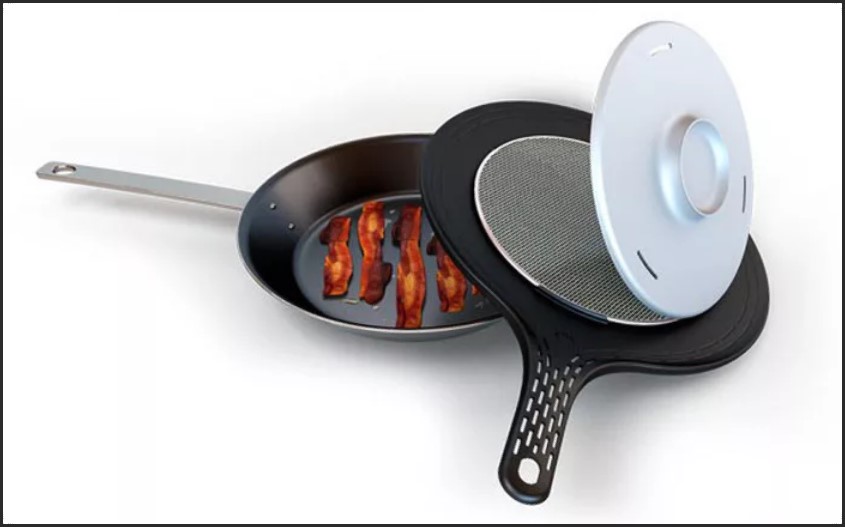 This amazing device is a real salvation from splashing and the smell of food in the apartment. The lid consists of two parts. Its diameter is adjustable up to 32 cm. The main feature is the presence of a replaceable carbon filter.