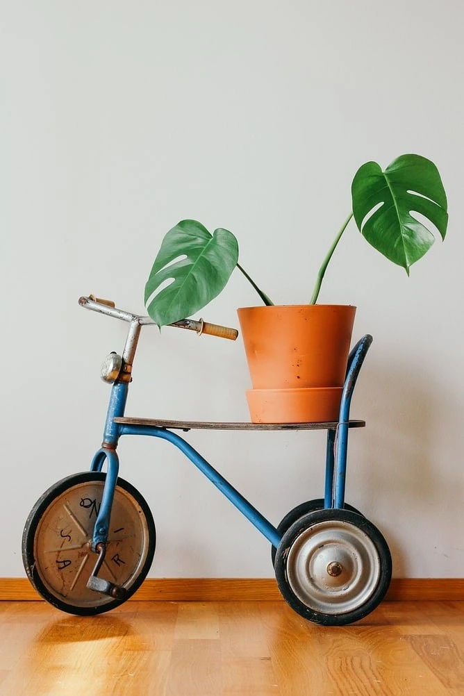 If your soul requires something unusual and very creative, then it’s time to go to the closet and look for something unnecessary. Many things are suitable for placing indoor plants: an old suitcase, cracked cups and even your children's bicycle. Surely you have something lost somewhere. It's time to give old household items a new life and use them to transform the interior.