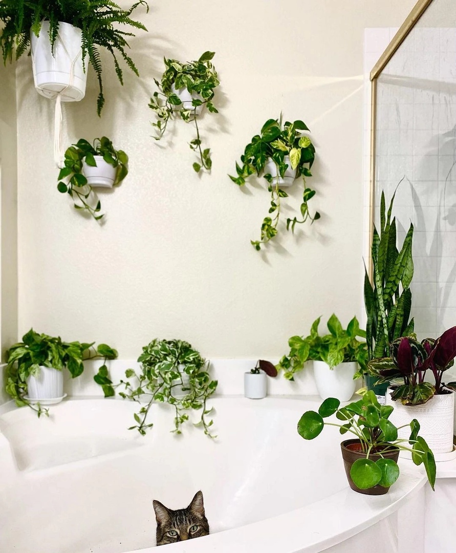 It is customary to decorate the bathroom with decorative towels and beautiful tubes for care products. But try putting a plant on the side of the bathtub that can survive in the absence of sunlight (and there are some!). You will immediately notice how the interior of the room will change - it will become fresher and brighter. Spathiphyllum, chlorophytum crested or sansevieria are perfect.
