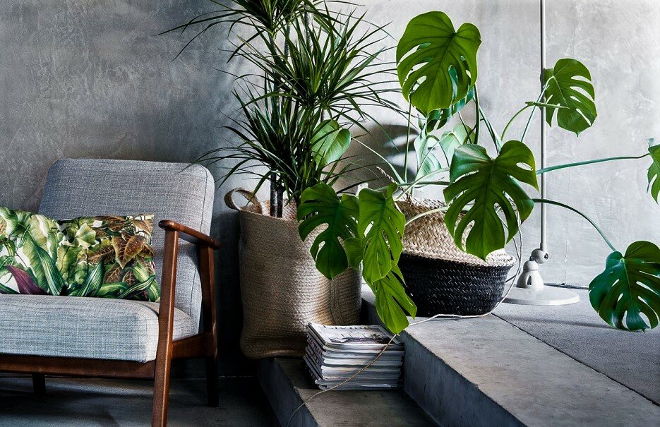 Play with height: Indoor plants placed at different levels are very eye-catching. Some lush flowers, such as alocasia or monstera, are visible even on the floor.