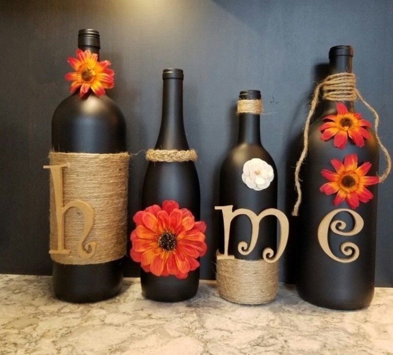 Making your own home decoration is easy. Conduct an audit of the various materials and residues that are available in the bins. For example, by cutting off a sleeve from an old sweater, you can build a case for alcohol.