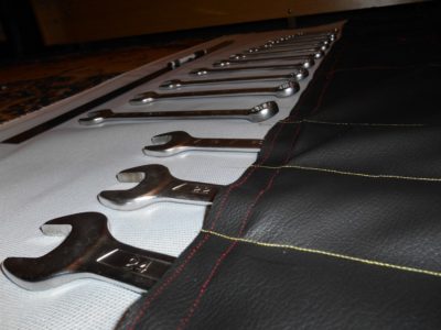 You can sew a case for wrenches from oilcloth on a fabric basis. The main advantages of the fabric are its low cost and density.This is the most suitable option for those who want to practice cutting and sewing. But keep in mind that oilcloth is still inferior to leather in terms of durability.