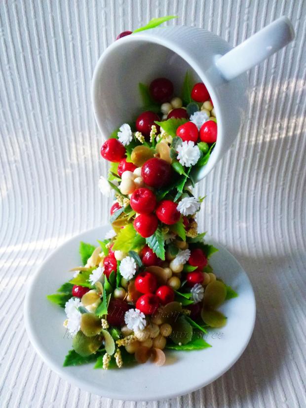 You can combine fruits with flowers and spices, and also add butterflies, ladybugs and bugs made of plastic or clay.