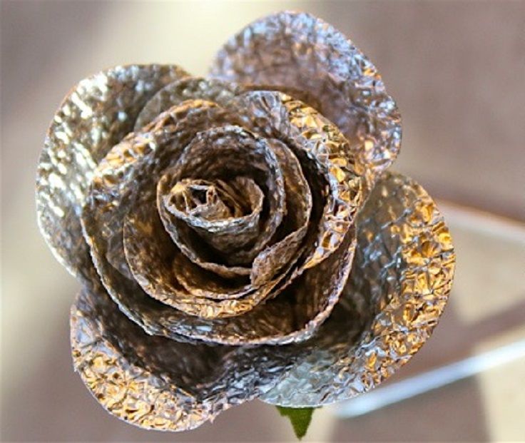Foil - An excellent material for creating various kinds of crafts. It is very plastic, malleable, can take any shape, and at the same time is absolutely environmentally friendly. The unique properties and high aesthetics of this material allow foil crafts to maintain an impeccable appearance in a variety of conditions. For example, they will perfectly decorate the kitchen or bathroom - rooms where the percentage of humidity is significantly increased. The properties of the thinnest metal sheet make it possible to create complex decorative elements for these rooms.