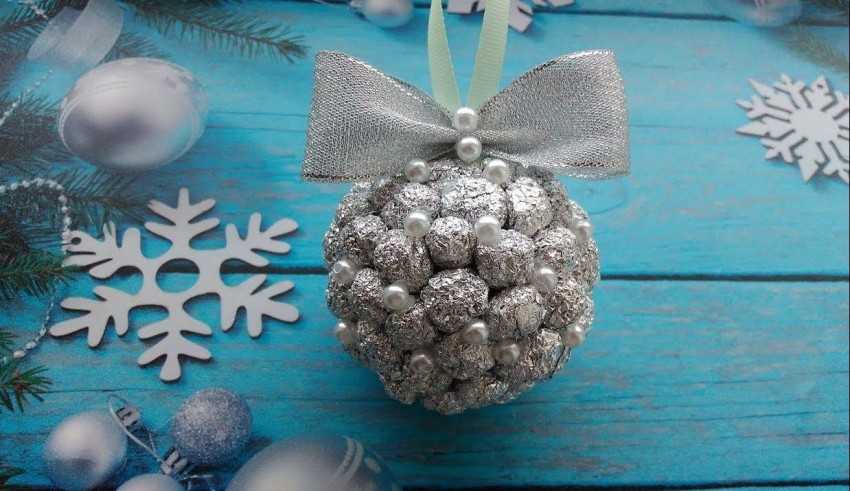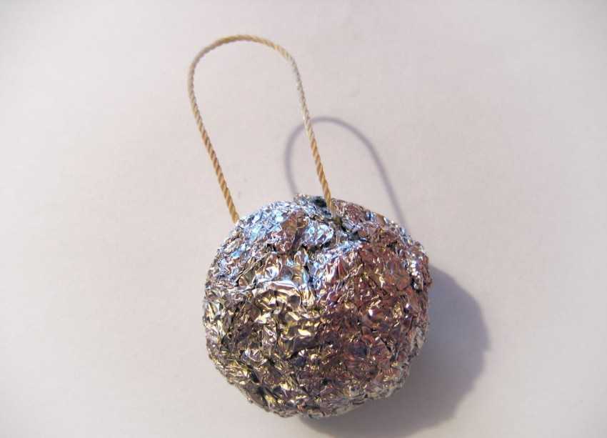 But making bells is also easy. First you need to create a template from thick paper or cardboard, and then wrap all this beauty in foil. Round toys can be made in the same way - using some kind of base or rolling small balls of foil and sticking them around any unnecessary shape, for example a kinder egg.