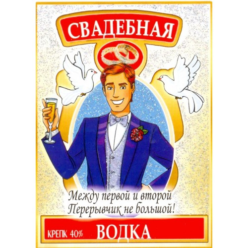 By the way, in Russia there is a tradition of putting several types of alcohol on the table, which should be placed near the spouses. These bottles are then safely stored in the family bar and only drunk on significant dates. This approach pushes young people to decorate bottles with themed labels. There are a lot of options: