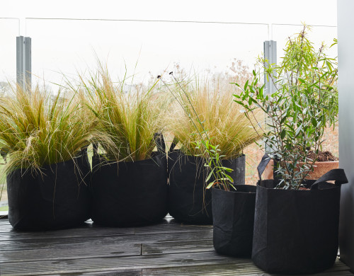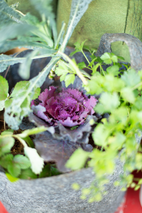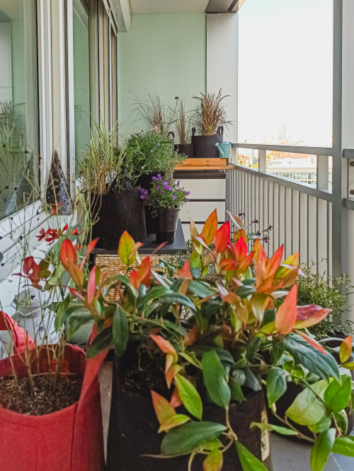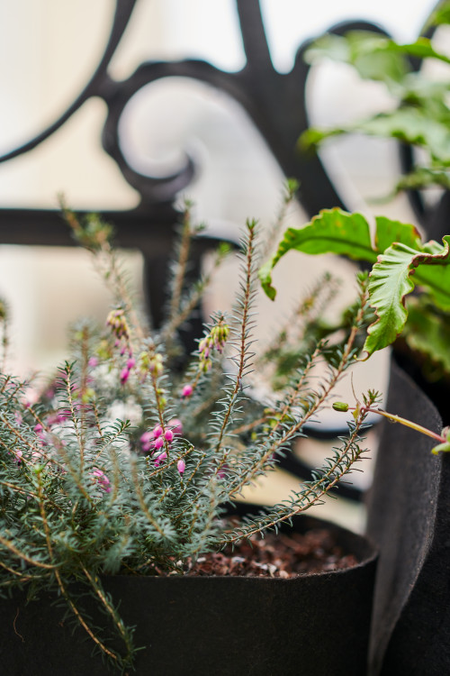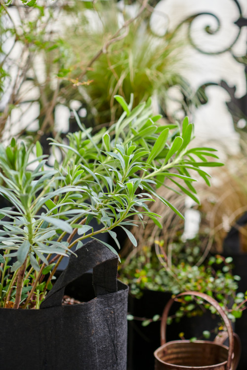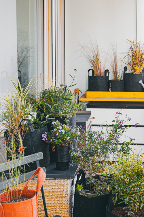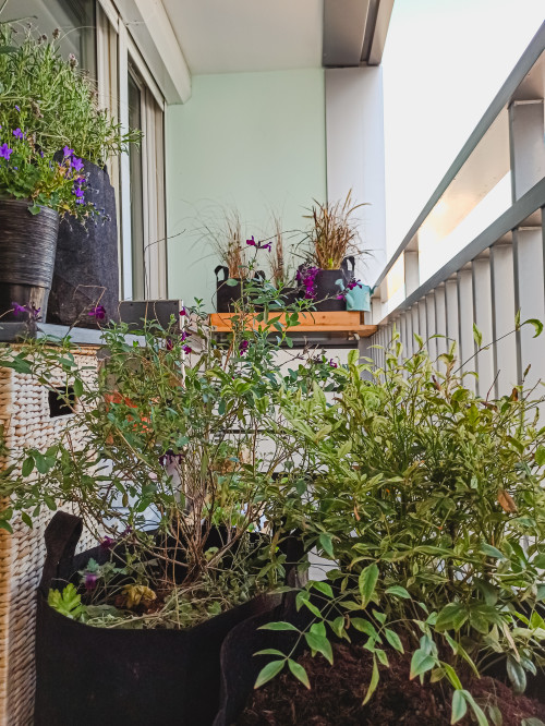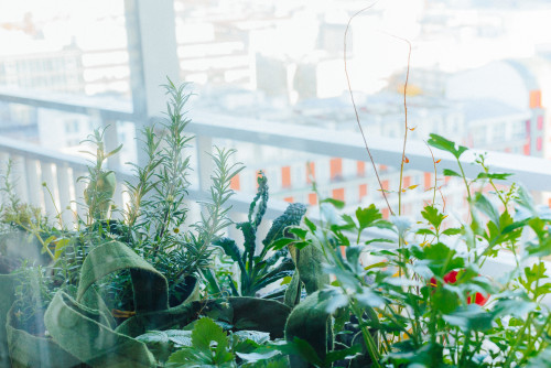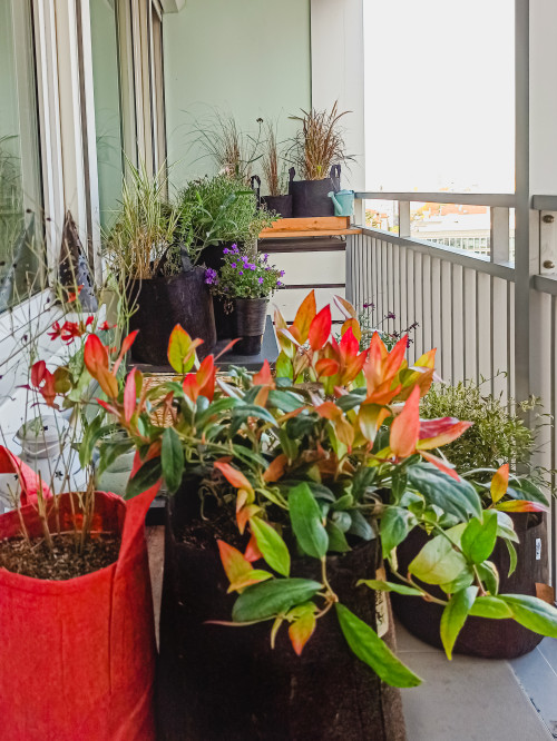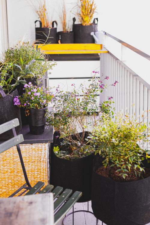 The author of the project did not just plant crops in pots - she combined entire compositions where small, pretty flowers grew next to herbs. And instead of pots, she chose attractive geotextile baskets. The result was just a mega-cool eco-balcony.