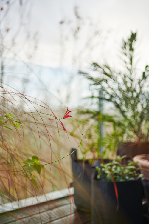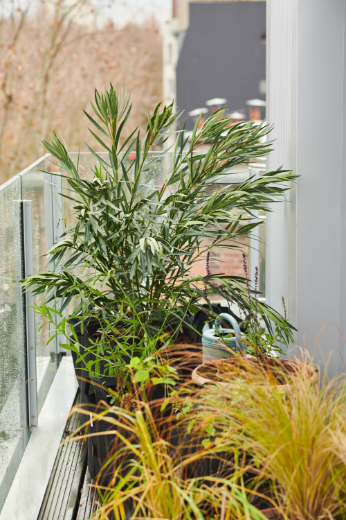 The plants that were planted on this balcony tolerate drought and wind well, but at the same time require long daylight hours. Therefore, in this project, the main characters were feather grass, tamarisk, strawberry tree, verbena, wormwood, armeria, sunflower and other beautiful seedlings.