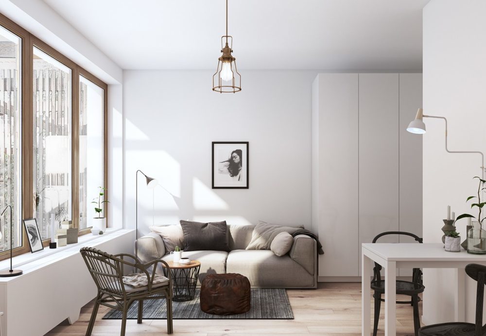 A loft-style chandelier is the rightful king of the room and the focus of design thought. As a rule, she: