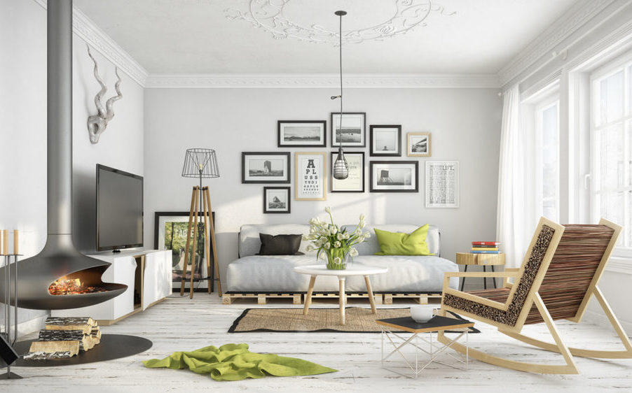 The colors of Scandinavian interiors are white and blue. As in Provence, it uses mainly natural materials, and welcomes bright accents and details - textile and metal inserts. A good solution would be handmade.