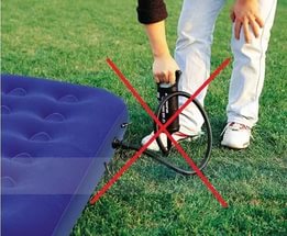 Inflating an air mattress with a built-in pump. We will need an electric pump and a nearby outlet.