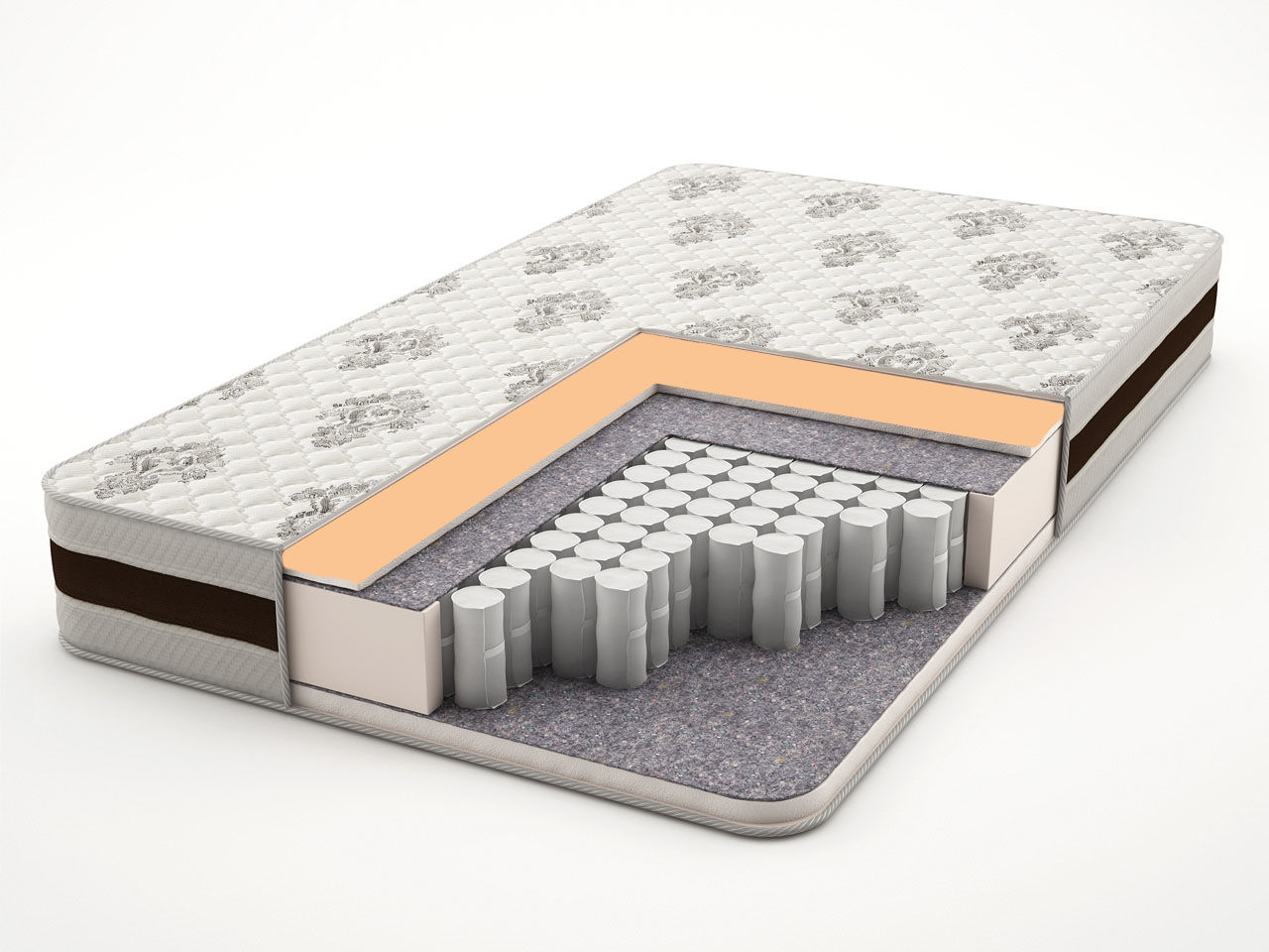 An independent spring unit consists of elements practically isolated from each other. Each spring is placed in a case and takes the load independently. The consumer properties of a mattress are affected by the number of springs per unit area. A square meter can accommodate from several tens to several thousand (!) elastic elements. Used as a support for such a spring latex, coconut coir and other materials. Along the perimeter, the spring block can be framed with polyurethane foam or the same latex.