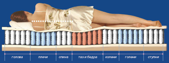 Designs made from freely located springs do not have these disadvantages. Each is installed in a fabric case and takes an individual load. In general, the product perfectly adapts to the contours of any body, has variable rigidity along the length (up to 9 zones), while more complex ones belong to the middle price category.