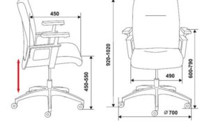 The parameters of a computer chair depend entirely on your preferences, height, and weight. The figure shows the dimensions of a standard chair for an adult. We will start from these sizes.If you are not satisfied with something, then change the size.