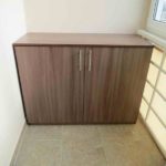 - Exterior finishing. Once the assembly is completed, we will need to somehow decorate our cabinet. It can be covered with film, painted or varnished. Of course, the handles will also need to be screwed on. On the inside of the door it would be useful to add a pocket for small items. To make full use of the internal space, we’ll make a shelf.